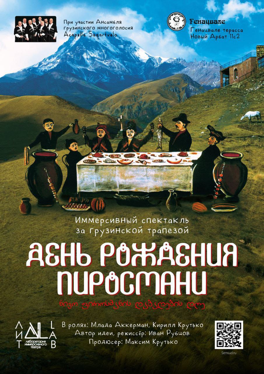 В этот вечер грузинский ресторан станет местом, где оживёт легенда. Мы приглашаем вас за праздничный стол — не просто как зрителей, а как гостей на День рождения Нико Пиросмани. Вас ждёт настоящий грузинский пир с винами, тостами, живым хором и поэзией.